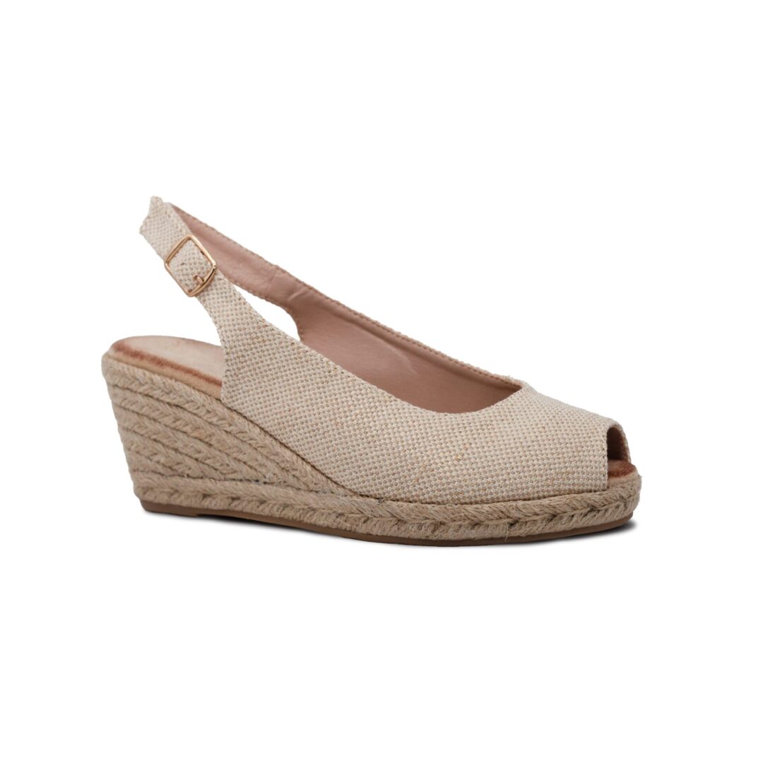 Alpargatas de cuña de Yute apricot con planta acolchada y cierre de hebilla al talón.