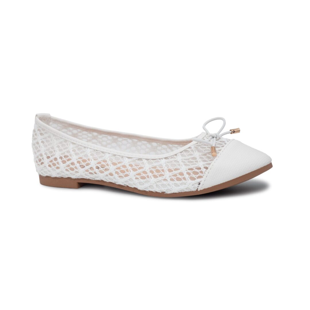 Estas bailarinas de encaje para mujer están compuestas por un bonito lazo en la pala y una cómoda planta acolchada.