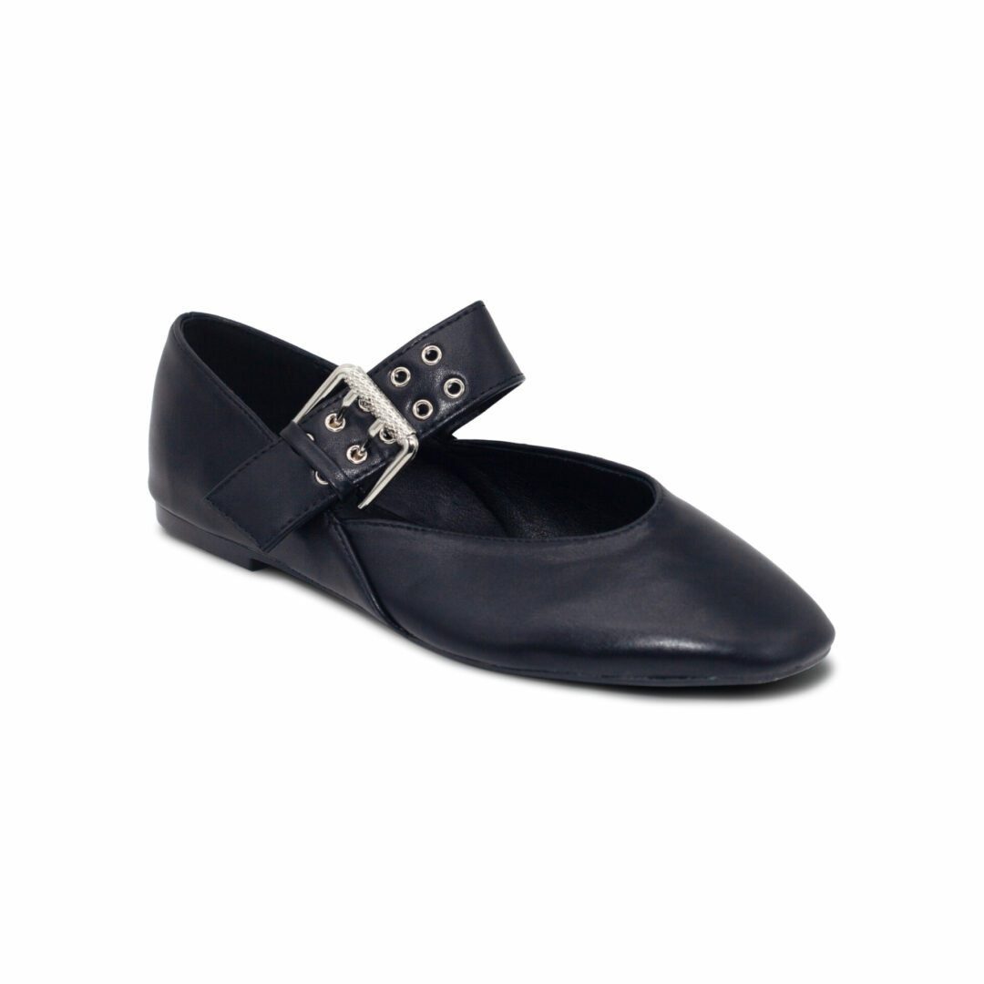 Bailarinas de mujer en color negro con diseño versátil y actual. Cuentan con un cierre de hebilla ancho para mayor ajuste, suela flexible que acompaña el movimiento natural del pie y planta acolchada que aporta comodidad en cada paso.