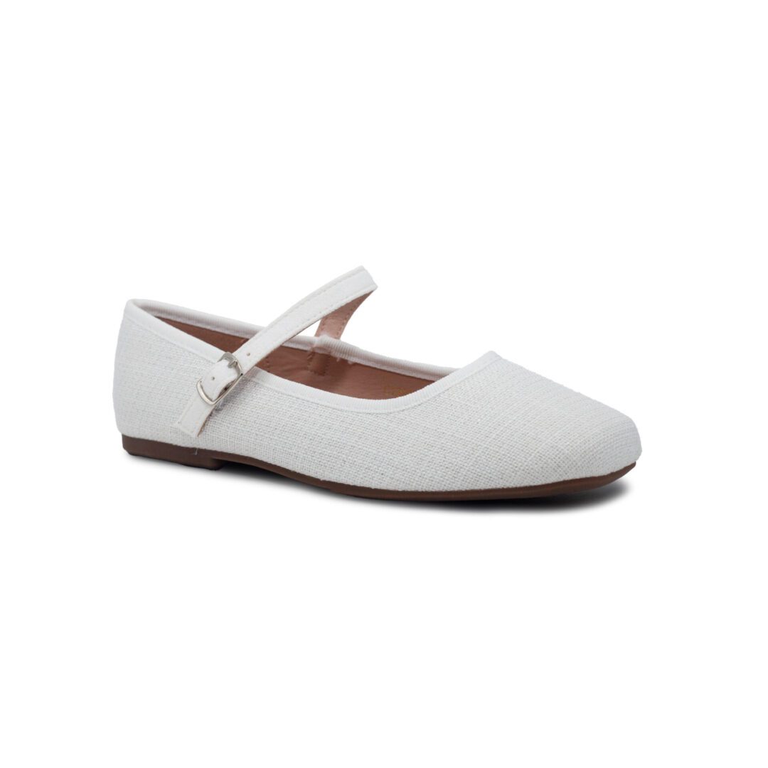 Bailarinas de niña en colores claros, con cómoda planta acolchada y cierre de pulsera con hebilla para un ajuste seguro. Elegantes y cómodas, son ideales para celebraciones especiales como comuniones, ceremonias y eventos, sin renunciar al confort en todo el día.