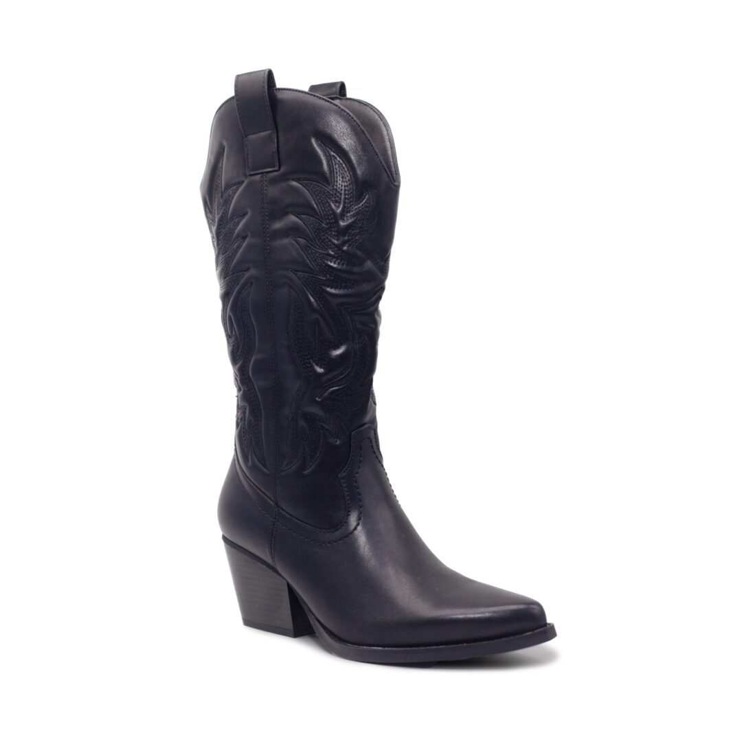 Botas cowboy de mujer negras con bordados tradicionales y tacón de 6 cm.