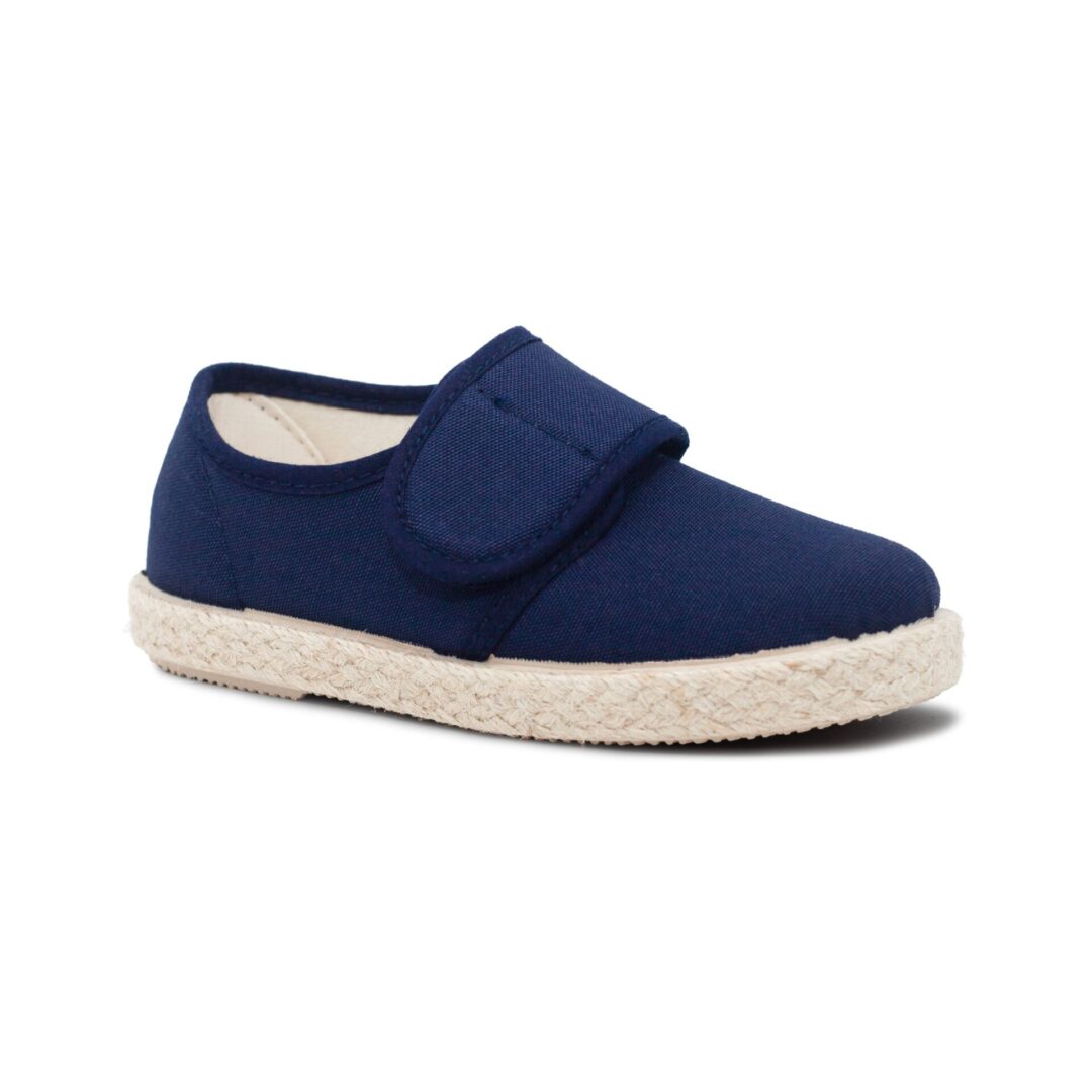 Lonas de niño con cierre de velcro y piso de Yute. Disponible en color vaquero, tostado y azul marino.