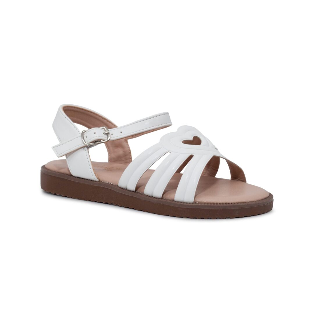 Sandalias de niña blancas con planta acolchada y cierre de hebilla al tobillo.