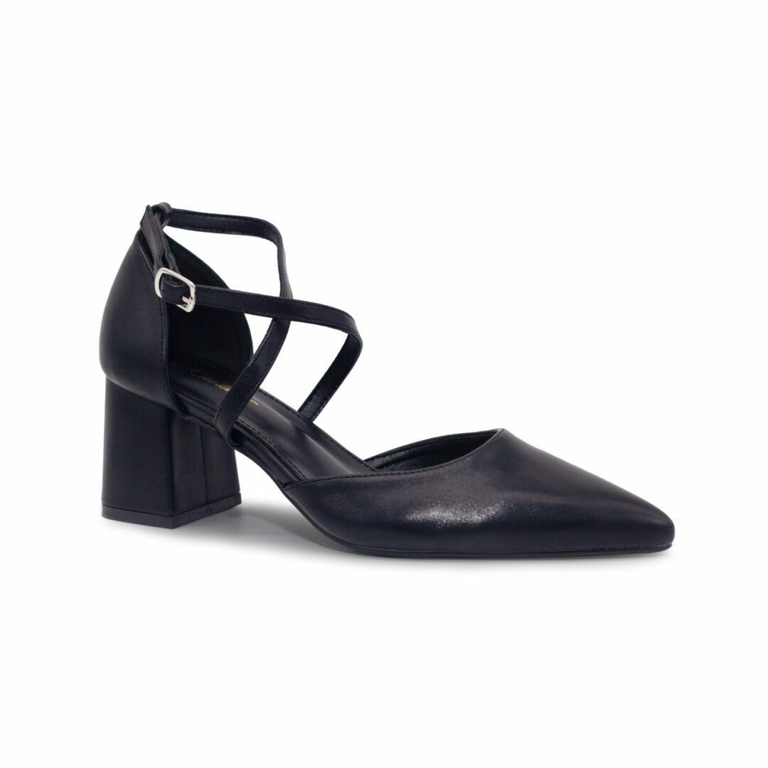 Elegantes tacones con planta acolchada para máxima comodidad, diseño en punta y cierre de hebilla cruzado sobre el empeine. Su tacón ancho de 6,5 cm ofrece estabilidad sin renunciar al estilo.
