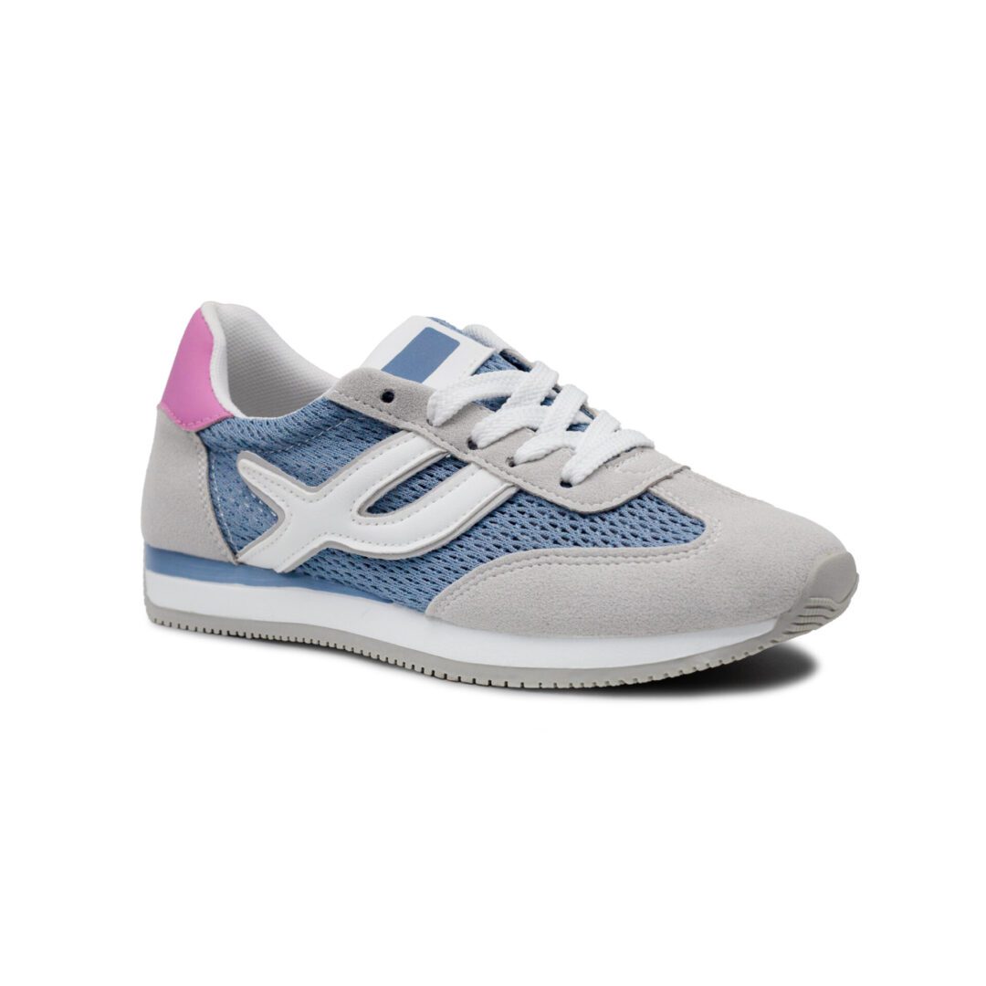 Esta zapatilla de inspiración retro combina estilo y comodidad para acompañarte en tu día a día. Confeccionada en malla azul transpirable y detalles en gris y rosa, es ligera, flexible y muy agradable al caminar. Su principal ventaja es la plantilla extraíble, perfecta para usar plantillas ortopédicas sin renunciar a un look deportivo, actual y lleno de estilo.