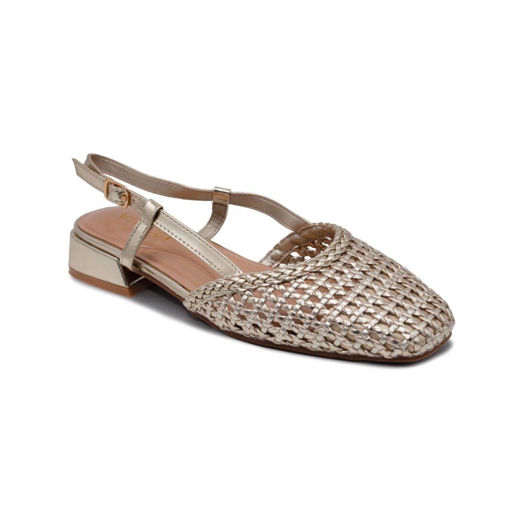 Zapatos trenzados de mujer con planta acolchada y tacón ancho de 2,5 cm. Disponibles en color dorado y negro.